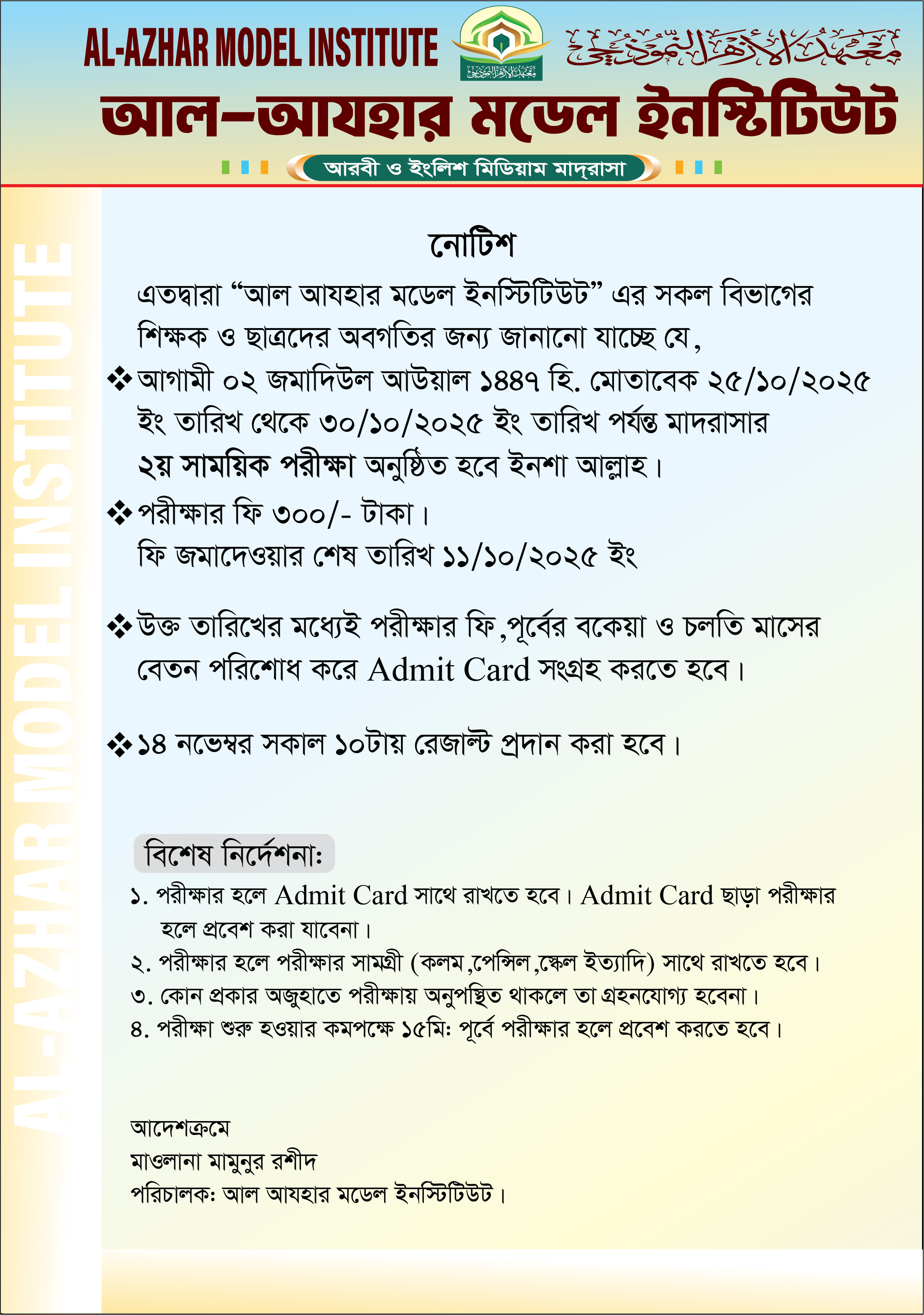 Al Azhar Model Institute integrates Islamic education with modern academics, fostering holistic development. Founded by Md. Mamunor Rashid, it offers a curriculum that includes Quranic studies, Hadith, Fiqh, Arabic, and contemporary subjects like Mathematics, Science, English, and Social Studies. This ensures students' intellectual and spiritual growth, preparing them for the complexities of the modern world while maintaining their faith.